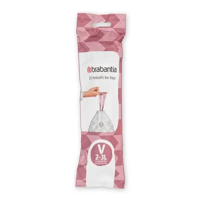 General description This roll of 20 Brabantia Perfectfit Bags is tailored to fit your bin perfectly and is color-coded for easy matching with your bin. Designed for a seamless fit, these bags can be removed and sealed quickly, ensuring a mess-free experience. Technical specifications Material: High-quality HDPE Capacity: 3 litres Quantity: 20 bags per roll Compatibility and accessories Suitable for use with 3 litre newIcon bins Compatible with Brabantia 'V' coded bins