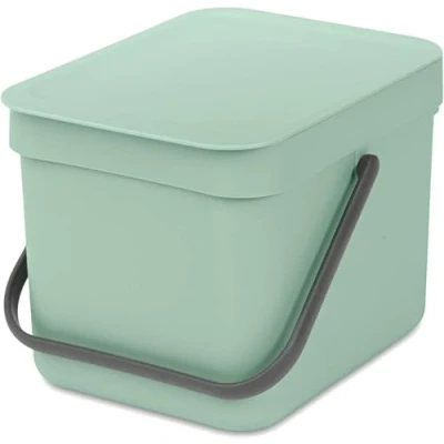 Brabantia Sort & Go Food Waste Bin 6L (Jade Green), Space Efficient Plastic Recycle with Handle, Removable and Stay Open Lid, Easy to Clean Kitchen Compost Caddy without Nooks Rims