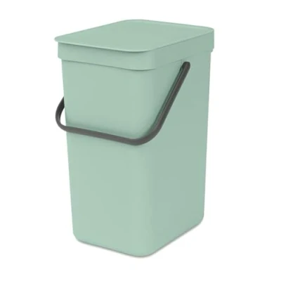 Brabantia Sort & Go Waste Bin 12L Medium Recycling Stay Open Lid Carry Handle Easy to Clean for Under Kitchen or Wall Mounted Compost Jade Green 20 x 25 35 cm