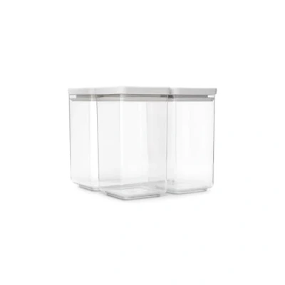 Brabantia stackable canister, set of 3.2x1.6 litre and 1x3.5 litre, light grey Space-efficient - stackable design Keeps contents fresher for longer - lid with silicone seal Contents always visible - clear plastic jar Durable - made of tough plastic