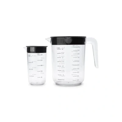 Nestable Jugs: The two-piece set includes 250ml and 1000ml measuring jugs that neatly stack for easy storage. Perfect for baking, cooking, or portioning liquids with minimal space. Precise & Practical: Clear metric and imperial markings allow accurate measuring of ingredients. Dual pouring spouts provide clean, drip-free flow for both left and right-handed use. Smart Lid: The versatile lid can rest open during use or seal tightly to protect contents. Useful for mixing, storing or serving liquids in a single container. Eco-conscious: Made from durable, BPA-free and fully recyclable plastic. A better alternative to single-use measuring tools for environmentally mindful kitchens. 5 Year Product Support: Supported by Brabantia’s 5-year care promise for consistent quality and confidence with everyday cooking and baking.