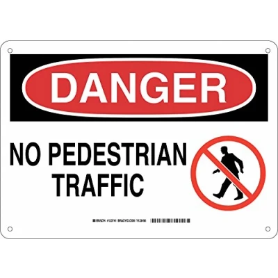 Brady 123741 Machine and Operational Sign, Legend"No Pedestrian Traffic", 10" Height, 14" Width, Black Red on White