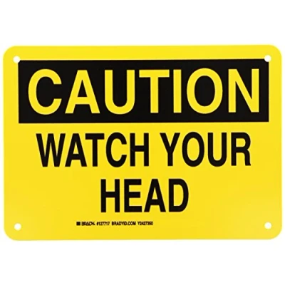Brady 127717 Machine and Operational Sign, Legend"Watch Your Head", 7" Height, 10" Width, Black on Yellow