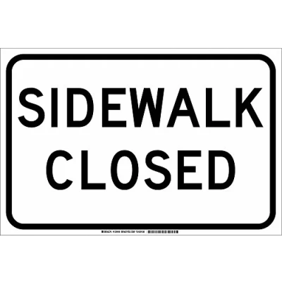 Brady 129444 Traffic Control Sign, Legend"Sidewalk Closed", 12" Height, 18" Width, Black on White