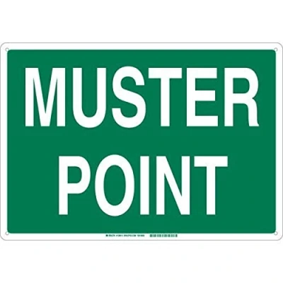Muster point safety sign 1mm flexible Plastic (400mm x 300mm)