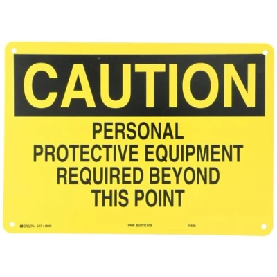Brady 25205 14" Width x 10" Height B 401 Plastic, Black on Yellow Protective Wear Sign, Header"Caution", Legend"Personal Equipment Required Beyond This Point"