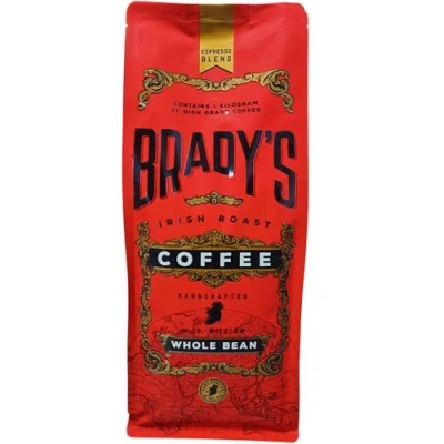 Brady’s Whole Coffee Beans Espresso Blend 1kg 100% Arabica Featuring Brazilian, Guatemalan & Colombian Medium Roast Chocolate Notes