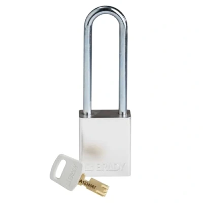 Brady SafeKey Padlock Aluminum Lockout with Key Tagout Security Lock for Indoor and Outdoor Use Shackle Height 76.20 mm Keyed Differently Silver