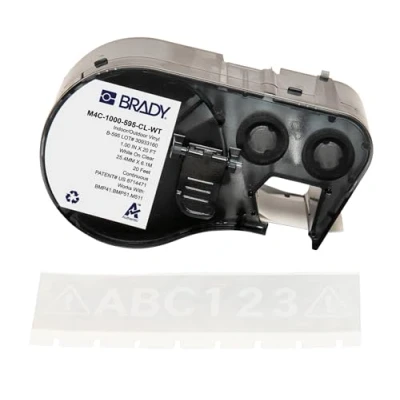 Brady Vinyl Label Tape for Printer BMP41/BMP51/BMP53/M511 Self Adhesive Labels White on Transparent (25,40 mm (W) x 6,10 m (L)) M4C 1000 595 CL WT