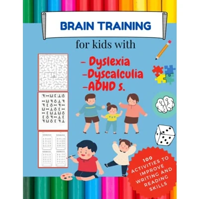 Brain training for kids with Dyslexia, Dyscalculia, ADHD s. Writing, Spelling & Math Activity book 100 LOGIC GAMES!: Activities to improve writing and reading skills