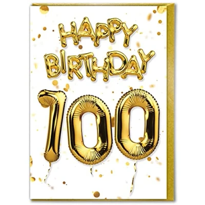 Brainbox Candy 100th Birthday Card Age 100 Beautiful White Gold Foil Effect Milestone Cards For Men Women