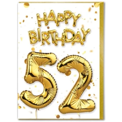 Brainbox Candy 52nd Birthday Card Age 52 Beautiful White Gold Foil Effect Cards For Him Her Men Women Friends