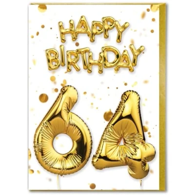 Brainbox Candy 64th Birthday Card Age 64 Beautiful White Gold Foil Effect Cards For Him Her Men Women Friends