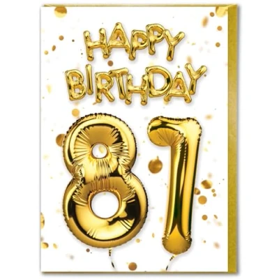 Brainbox Candy 81st Birthday Card Age 81 Beautiful White Gold Foil Effect Cards For Him Her Men Women Friends