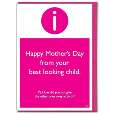 Brainbox Candy Funny Mother's Day Card 'Best Looking Child' Sibling Perfect Hilarious Joke For Special Mum To Go With A Mothers Gift
