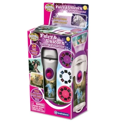 AmazonProjects 24 enchanting fairy and unicorn images onto walls and ceilings in a dark room Includes 3 slide discs featuring 24 magical fairy and unicorn scenes in their whimsical homes Clear, detailed images up to 1 metre wide – simply twist the lens head to focus 2-in-1 design: fun image projector that also doubles as a handy torch Perfect for little hands – chunky, durable design measuring 12cm long x 4cm diameter Ready to use – batteries included, Manufacturer: Brainstorm Toys