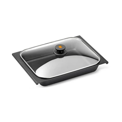 Cast aluminium body Impact-resistant tempered glass lid Heat-insulating knob Has 5 litre capacity Measures 41 cm length by 29 cm width