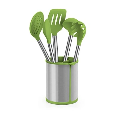 All the necessary utensils of the prior to your kitchen collection: ladle, pasta spoon, spatula, slotted turner and spoon Pieces made from Material approved for the contact with food You will not scratch your dining room or kitchen with this tool made of stainless steel 18/10 and silicone: suitable for use with all types of Saucepans and Frying Pans with or without non-stick Made of 304 stainless steel and silicone coated nylon on the inside The prior accessories have been approved as a food products use through the LFGB certification by the German TÜV agency reinlhan