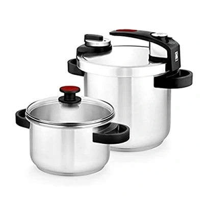 Stainless steel 18/10 (AISI 304) Very easy opening system, and easy to use Two levels of operation to prepare all kinds of stews in record time. Level 1 for diet cuisine and level 2 for food requiring more cooking time. Triple heat diffuser base, which reaches the optimum temperature faster and more efficiently. 4 safety systems. Operating valve, safety valve, opening blocking system and depressurisation window.