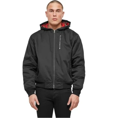 Warm winter lining Tartan lining Outer material made from robust blended fabric Elastic, comfortable ribbed cuffs Chest pocket with zip, two slip pockets with press stud closure and flap