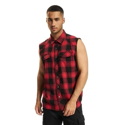 Masculine, sleeveless check shirt Comfortable to wear / skin-friendly cotton material 2 chest pockets with press stud fastening/press stud placket Straight cut Lumberjack look