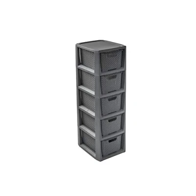 BranQ Home essential, Rattan Design BPA Free Plastic 5 Drawer Storage Unit, Ideal for Office, Bedroom and Bathroom Storage, 29.5 x 24 80 cm (LxWxH) Anthracite