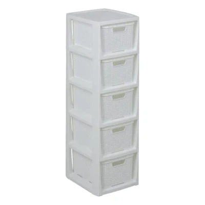 BranQ Home Essential Shelf in Rattan Design, BPA Free Plastic PP (polypropylene), White, 29.5 x 24 80 cm, 5 Baskets
