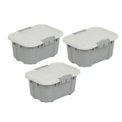 Universal storage container Velur, a set of three universal storage containers perfect for the household Modern design and shape, comfortable to touch surface, stable and durable Easy to close thanks to practical clips. Stackable on top of each other to save Material: BPA-free plastic PP, dimensions: 34 x 24.3 x 15.6 cm (L x W x H) Colours: light grey, quantity: 3 pieces