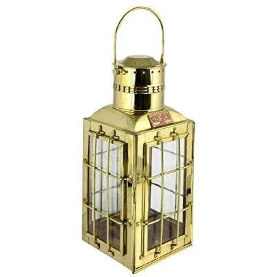 This fine brass ships lamps was traditional used in the cargo holds and below decks and gave strong all round illumination Strong grid bars protected the glass during heavy passages at sea. Convenient fittings for suspending from ropes or wall brackets This is a traditional oil burning lamp. Lamp oil is readily available in hardware stores and garden centres. Uses 12mm single wick - with burn time of 12 hours per filling