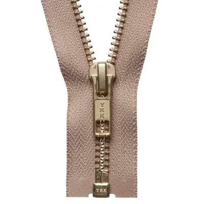 Brass Metal Open End Zip 81cm: Fawn, Supplied by Downton Fabrics and Crafts