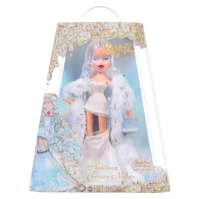HOLIDAYZ FROSTY NIGHTZ: Cloe’s bringin’ icy bratitude with the Bratz 2025 collector’s edition holiday doll WINTER FASHION: A winter-fantasy vision meets runway drama – this holiday-couture, semi-sheer dress dazzles with crystal embellishments and a striking, dramatic silhouette ICY ACCESSORIES: Sleigh the season with a draping, faux-fur scarf, and a purse with blue rose design SHIMMER FROST MAKEUP: White lashes, blue eyeshadow, a berry lip, and a glossy, all-over, white shimmer for the ultimate, snow-kissed glow COLLECTOR’S PACKAGING: A stunning trapezoid box featuring gorgeous gold detailing and character art; suitable for display and for surprising your favourite person WHAT’S INCLUDED: 1 doll, 1 dress, 1 pair of heels, 1 scarf, 1 purse, and 1 doll stand, Manufacturer: MGA Entertainment