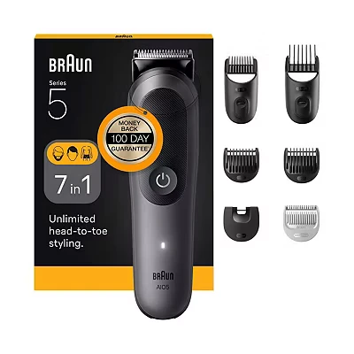 Boots177 Advantage card points. Braun All-in-One Kit Series 5, 7in1 Grooming, Sharp Blade, Body Trimmer, AIO5520, Grey FREE Delivery on orders over 45 GBP.