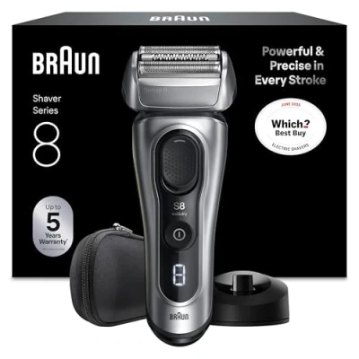 Powerful & precise in every stroke: Braun’s Series 8 premium electric shaver with synchronized 4+1 Technology for a powerful, close and gentle shave Efficient & comfortable every day: SensoAdapt technology analyzes your beard density 160x/sec and automatically adjusts power for a comfortable shave every day Precision even in tricky areas: The 40° adaptive Precision Shaving Head provides a close and precise shave even on tricky face contours, like under the nose and chin Perfect finish even on longest hair: The integrated Precision Pro-Trimmer with surgical-grade stainless steel allows for a perfect finish, even on longest hair Made in Germany, built to last for years: The shaver is made from high-quality materials with the highest attention to detail. 100% waterproof for wet & dry use. Up to 60-min Li-Ion battery runtime