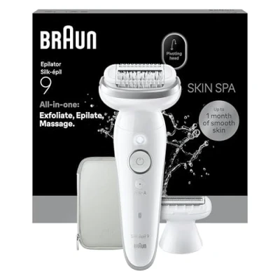 Braun Silk·épil 9, Epilator with Pivoting Head for Easy Hair Removal, Wet & Dry, Lasting Smooth Skin, Includes Shaver and Trimmer Comb, 9 041, Silver