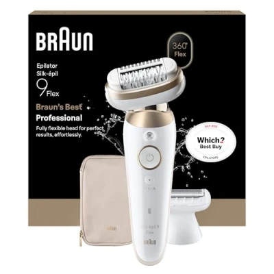 Braun Silk·épil 9 Flex, Epilator with 360 Flexible Head for Easy Hair Removal, Wet & Dry, Lasting Smooth Skin, Includes Shaver and Trimmer Comb, 030 3D, Gold