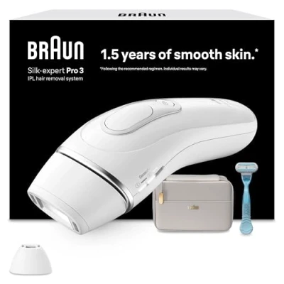 Braun Silk·Expert Pro 3 PL3121 Latest Generation IPL For Women And Men, At Home Hair Removal Device, White/Silver, With Pouch, Precision Head Venus Razor