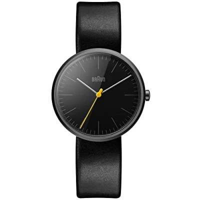 The width of the dial is 38mm and depth is 10.2mm Matt black finish Genuine leather strap Quartz movement Scratch-resistant mineral glass 2 year warranty