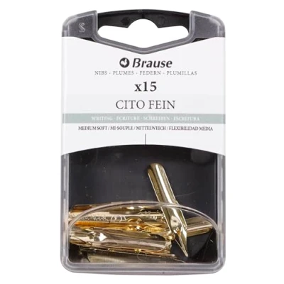 INITIATION: The Cito fein nib is an excellent nib for beginners to writing, very soft. SOLID: It is solid and withstands the pressure of heavy writing. WRITING: Golden nib with recessed reservoir suitable for cursive or script writing Box of 15 golden nibs 0.3 mm: this figure designates the width of the beak of the nib. GERMAN QUALITY: Made in Germany