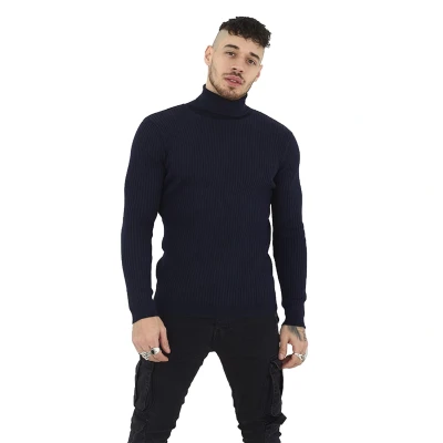 BRAVE SOUL Mens High Neck Casual Jumpers from 100% Cotton Pull On Long Sleeves Sweaters, Mid Navy Colour, UK Size M