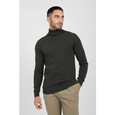 Brave Soul Mens Khaki 'Hume' Roll Neck Jumper Size 2XL