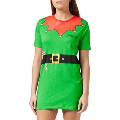 Christmas Pyjamas By Brave Soul Brave Soul Novelty Elf Nighty, loose fit Green Soft Feel 100% Cotton