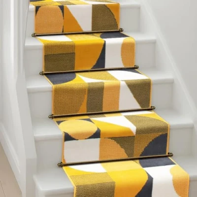 Bravich Modern Geometric Pattern Very Long Hallway Hall Runner Narrow Rugs Custom Length Grey Mustard Stair Carpet Mats 60x240CM (2'X8')