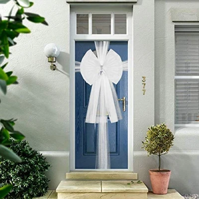 LARGE BOW: The decorative door bow is double layered, with diamante glitter accents and comes at a giant size of 245cm Length x 45cm Width, much larger than your traditional christmas decorations. The large size of this white ribbon bow gives it a luxurious magic touch, transforming your doors this winter season. AESTHETIC SEASONAL DÉCOR: This holiday season, Christmas and Thanksgiving are huge celebrations to have fun and party with your family- these christmas front door decorations are a must have decor for these events and can be sent as presents for your friends as the perfect gift. ANY OCCASSION: Not only is this bow for door made for Christmas time, they can be used for any celebration decor such as : Valentine's Day, Birthday Parties, Christening Decorations, Baby Shower, Wedding, Thanksgiving, and not just for your front door wreath ! Add an elegant touch to windows, garage, table, or car when gifting a present. MATERIAL: These classy, ribbon for door bows are made from a weather resistant thick tulle netting fabric, with wrap around sash, which is ensured to not shrink, droop or fall in the rain, durable for many years and make your home Christmas décor long-lasting. Suitable for indoor and outdoor garden use. VARIETY: The front door bows are available in Red, White and Gold, to match your personal taste and other Xmas decorations such as Christmas Tree, Wreaths, Ribbons, Crackers, Garlands and Other Ornaments. Net Fabric Size: 450cm x 250cm
