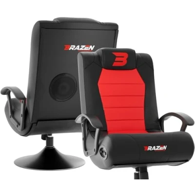 ERGONOMIC DESIGN: Grey Gaming Chairs for Kids: This kids gaming chair for boys and girls is the ergonomic BraZen Stag video games chairs rocker pedestal kids gaming chair no wheels compatible bluetooth gaming chair with speakers is a superbly UK designed ergonomic chair. BLUETOOTH COMPATIBLE SPEAKERS: 2.1 Bluetooth Compatible Wireless Speaker Surround Sound System: A gaming chair kids gaming chair for boys and girls ; an ergonomic rocker video pedestal audio gaming chair kids, teenagers and small adults (see dimensions provided) with both bluetooth compatible and hard-wired connection having a high definition speaker, subwoofer and control panel. This foldable gaming chair is compatible with most devices with an audio output including variations of all major games consoles, tvs, mobile phones, computers and tablets. FOLDABLE: Brazen Stag kids gaming chair for kids is a foldable gaming chair that can be folded in half for easy storage and portability and is a relatively small gaming chair in stature and designed for 6 year old's and up to small adults (see dimensions provided). The approximate dimensions of this video games chairs or gaming chair kids in centimeters Height:92; Width:54; Length:68 and approximately 15 kg. EASY ASSEMBLY: This kids gaming chair for boys and girls video games chairs includes in the packaging all necessary screws and tools for fixing and a step by step instructions/guide, for quick assembly of this British designed high quality gaming chair for kids it can be assembled only by one person in less than 20 minutes. WARRANTY: We know you'll love the BraZen Stag kids gaming chair kids ergonomic video games chairs rocker pedestal speaker sound bluetooth chair kids gaming chair for boys gaming chair with speakers. It comes with a manufacturer's warranty extension invite and great aftercare from BraZen Technical Support.