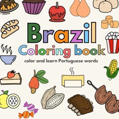 Brazil Coloring Book: Color and learn Portuguese words: BILINGUAL Portuguese/English Food