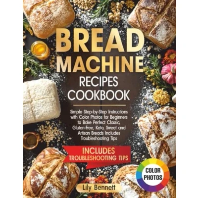 Bread Machine Recipes Cookbook: Simple Step by Instructions with Color Photos for Beginners to Bake Perfect Classic, Gluten Free, Keto, Sweet and Artisan Breads Includes Troubleshooting Tips