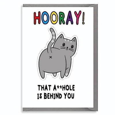 Break Up Divorce Card Funny Rude Cat Animal Friend Brother Sister Son Daughter Greeting For Him Her Joke LOL Pun HOORAY! THAT A**HOLE IS BEHIND YOU D8