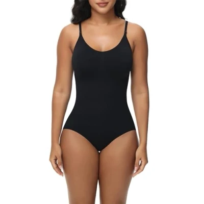 [Soft and stretchy shapewear]: Made from high quality nylon and spandex fabrics; the women's bodysuit is super soft and stretchy, lightweight and breathable. This waist slimming body shaper with a firm fit offers seamless 360-degree coverage. The tummy control body shaper for women has no steel bones or wires and is very comfortable and healthy to wear all day long as a shaping bodysuit. [Slim your tummy and show off your curves]: The shapewear bodysuit with seamless lingerie design is super stretchy to cover your entire body centre with high compression, hold your tummy in, shrink your waist, tighten the fat on both sides of your body and instantly reveal a slimmer waist. As it has an open press stud design at the crotch. You can wear it every day and in every season [Simple, trendy and humanised design]: No breast pad, so you can wear your favourite bra, it is suitable for most breast types and body shapes. In addition, the tummy control of women's shapewear with adjustable thin shoulder straps helps to adjust the degree of tightness [Suitable for any occasion]: Women's shapewear can be worn as a basic bodysuit or as a regular dress outdoors. It prevents clothes from rolling up and keeps the tummy area flat. You can wear it to all occasions such as weddings, postpartum, work, travelling, parties, fashion shows and daily life, etc. On any occasion you want to look slimmer and more unique. [Size tips]: Follow our size chart and measure your bust, waist and hips. You'll be surprised how ‘tiny’ the bodysuit looks when you first try it on. But don't worry, the bodysuit is deliberately made from super stretchy fabric so that it hugs you in all the right places!