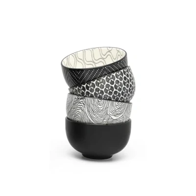 Bredemeijer Tea Cups Set of 2 Modern Striped Ceramic Coffee Stoneware Mugs...