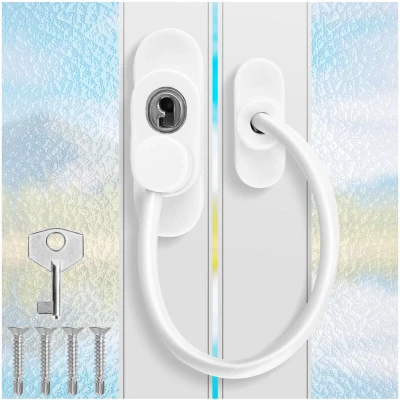 Description: The Lockable Cable Window Restrictor is a simple to fit device that limits the distance a window can open, ideal for home & commercial safety. When the cable is in place the distance the window can open is limited, by using the key the cable can be removed from one end and the window can be opened fully. Suitable for most types of windows and small doors. Perfect for home, public and commercial applications Discourages burglars and intruders Designed specifically with child safety in mind. Window Style: Double Hung Screws: Included Main Colour: White Size: About 21.5*4.2*3cm Material: Zinc Alloy, UPVC Quantity:8pcs Suitable For: UPVC, Wood, Aluminium & Metal Features: Key Operated,Child Safety Security Locking Package Included: 8 x Window Door Restrictor